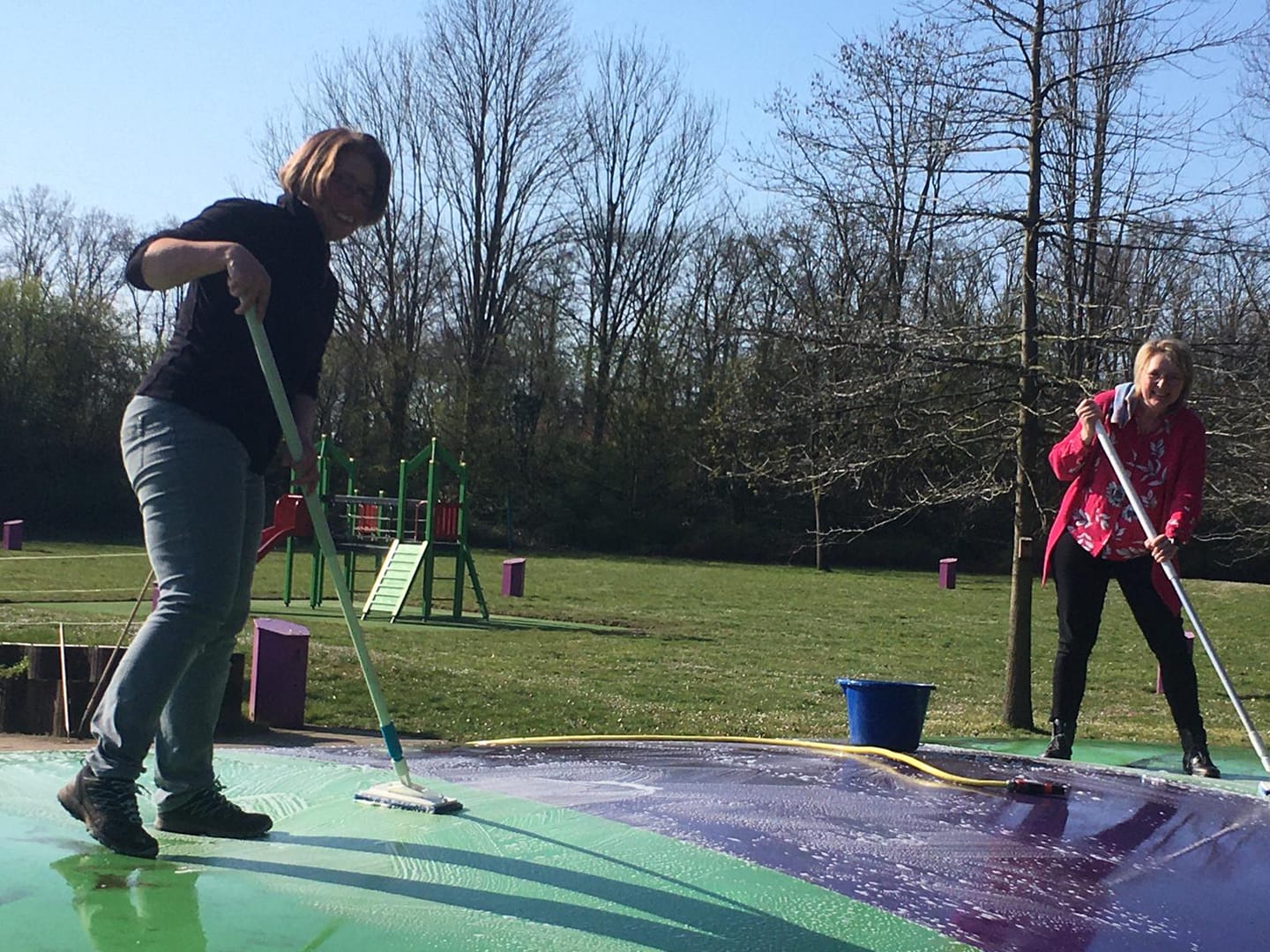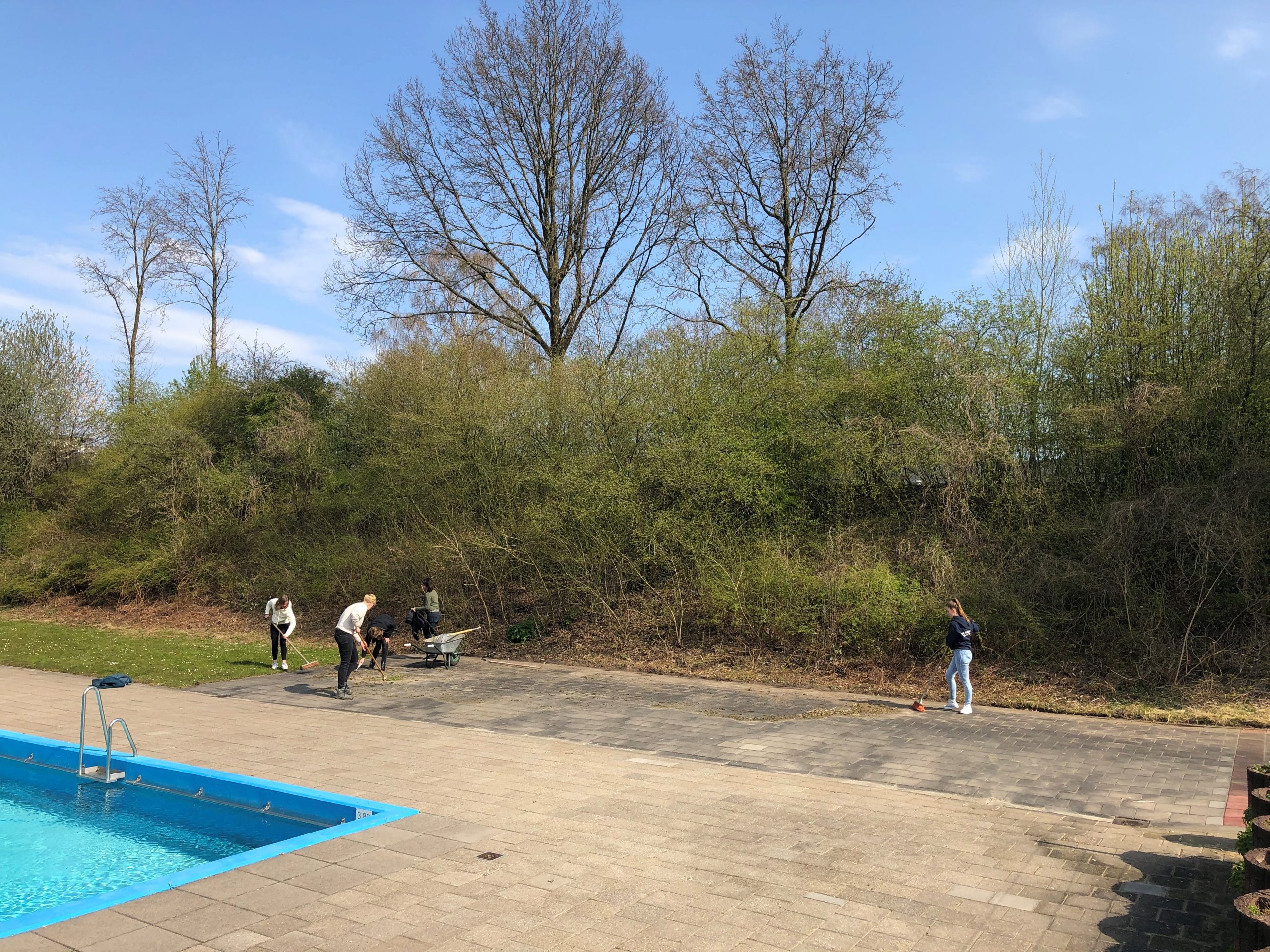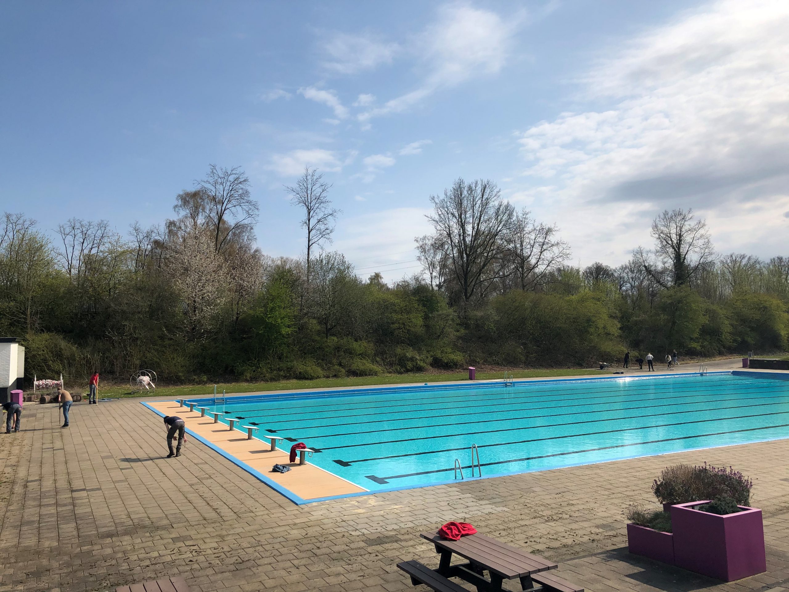 Het zwemseizoen 2021 begint officieel op 2 mei, maar afgelopen zaterdag werd alvast een flink voorschot genomen. Na een eerdere klusdag in maart, werd nu in twee teams zowel de ochtend als de middag benut om het bad nog verder in gereedheid te brengen. Zo´n 50 vrijwilligers, grotendeels uit de gelederen van DHV, Devoc, SV Delden en DKV Zwart Wit, krabden, schoffelden, lapten en verfden zich onder een heerlijk zonnetje een slag in de rondte. De eerste duik van het seizoen gold na afloop voor het dapperste deel van de helden als ultieme beloning.