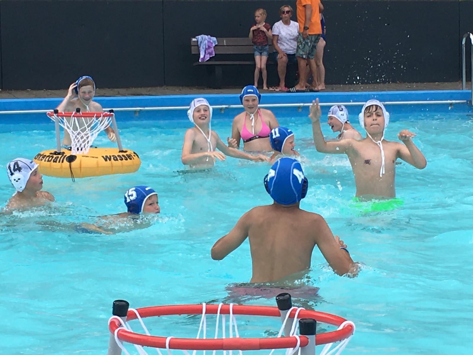 Waar het zeemeerminzwemmen en het synchroonzwemmen vooral toch dames trok, was het aandeel jongens des te groter bij het schoonspringen. Voor de gelegenheid was Sebas van Baarsen op zijn motor geklommen en vanuit de hoofdstad afgereisd naar het Deldense. Waar de filmpjes van zijn stunts van tevoren al indruk maakten, deed zijn verschijning ter plekke dat zeker ook. Bovenal bleek Sebas een vaardige leermeester die de 30 jongens en meiden uitdaagde om te durven wat ze anders nooit zouden doen. Als afsluiting van een volle en leerzame middag werd een clinic waterbasketbal verzorgd, waarbij nog maar eens bleek dat de factor water alles een extra dimensie geeft.